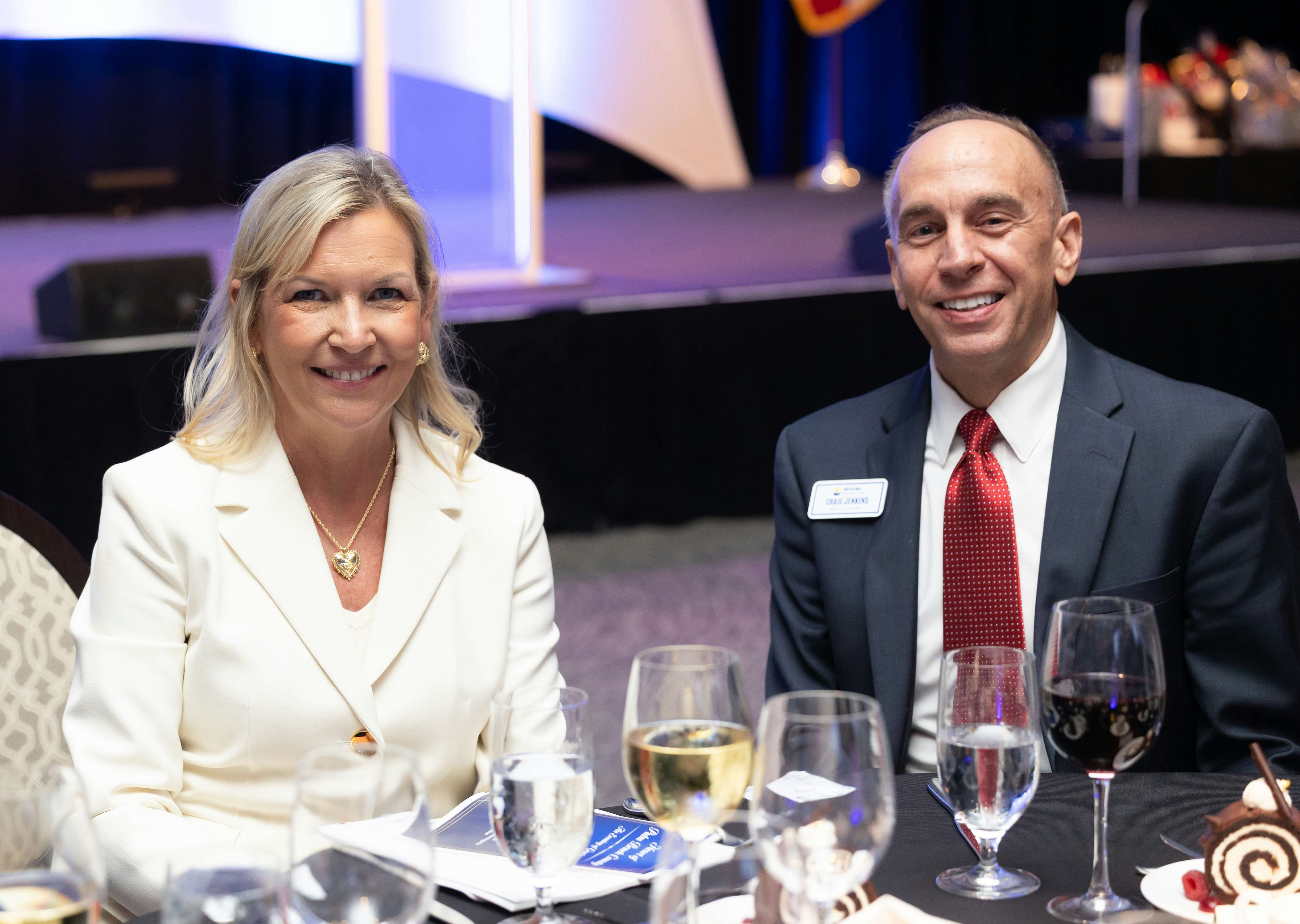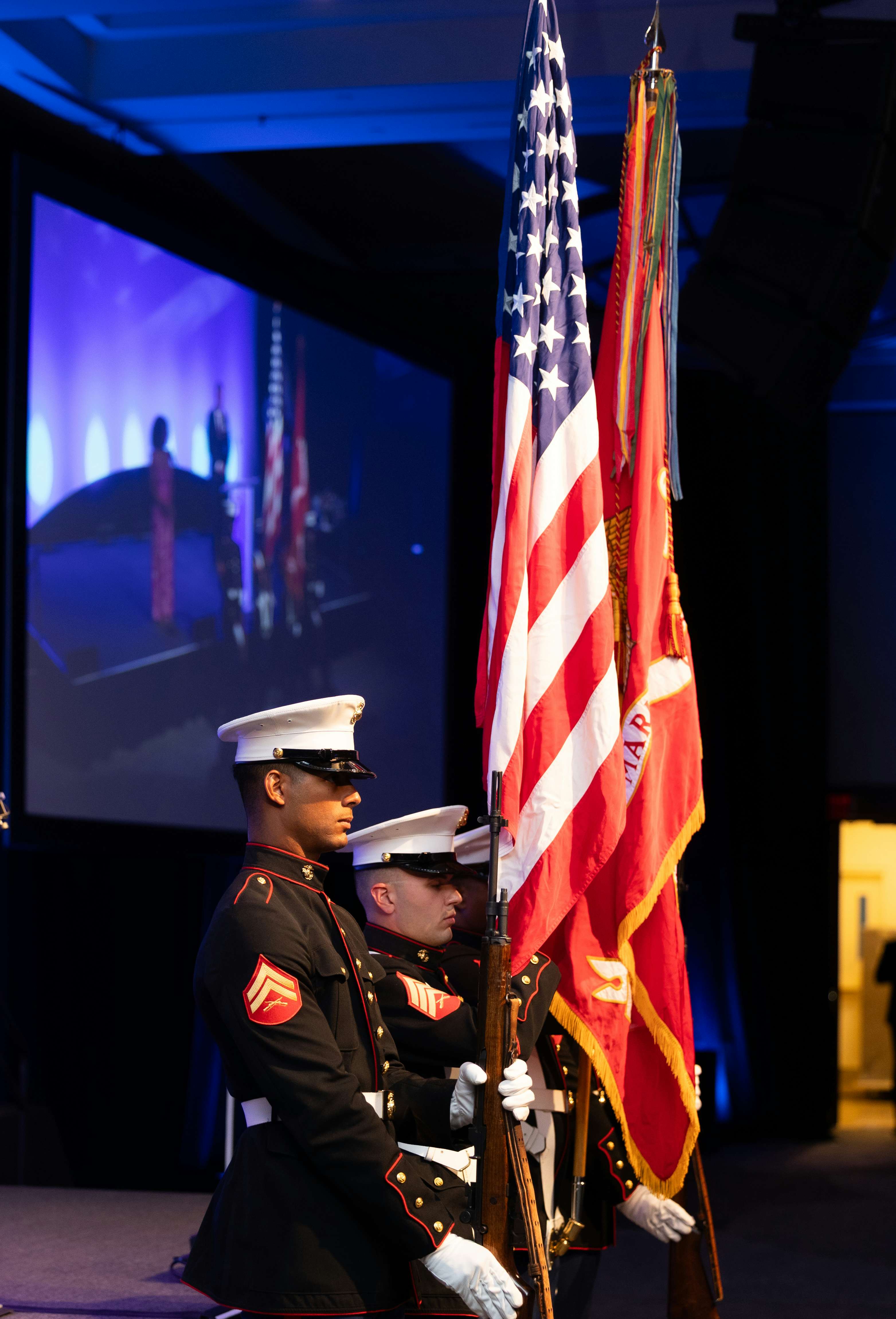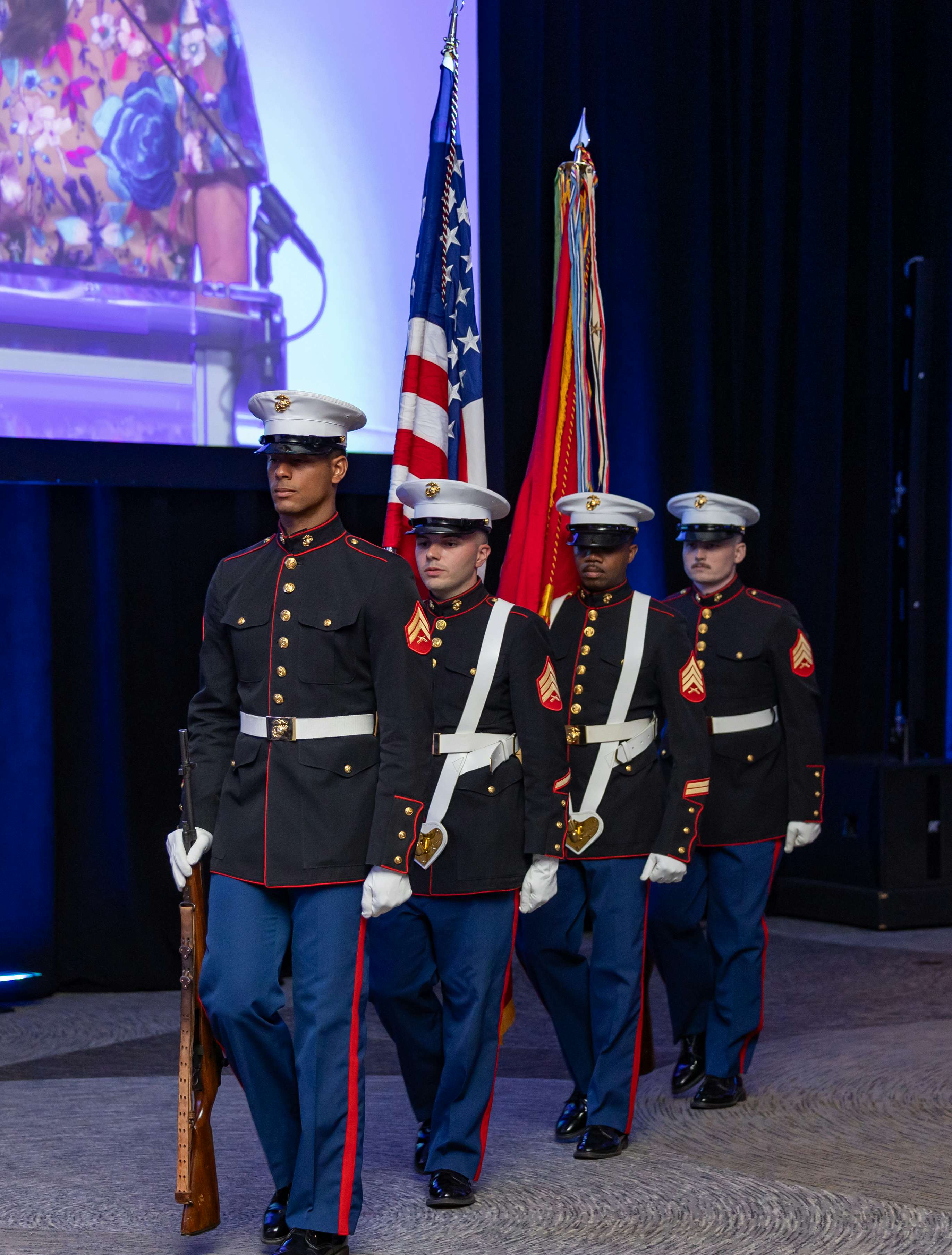 The evening began with a stirring presentation of the colors presented by the 4th Air Naval Gunfire Liaison Company of the U.S. Marine Corps, under the command of Lieutenant Colonel William F. Dammin. Henry Moreno, Chair of MISSION UNITED and UWPBC Board Member, led the audience in the Pledge of Allegiance.