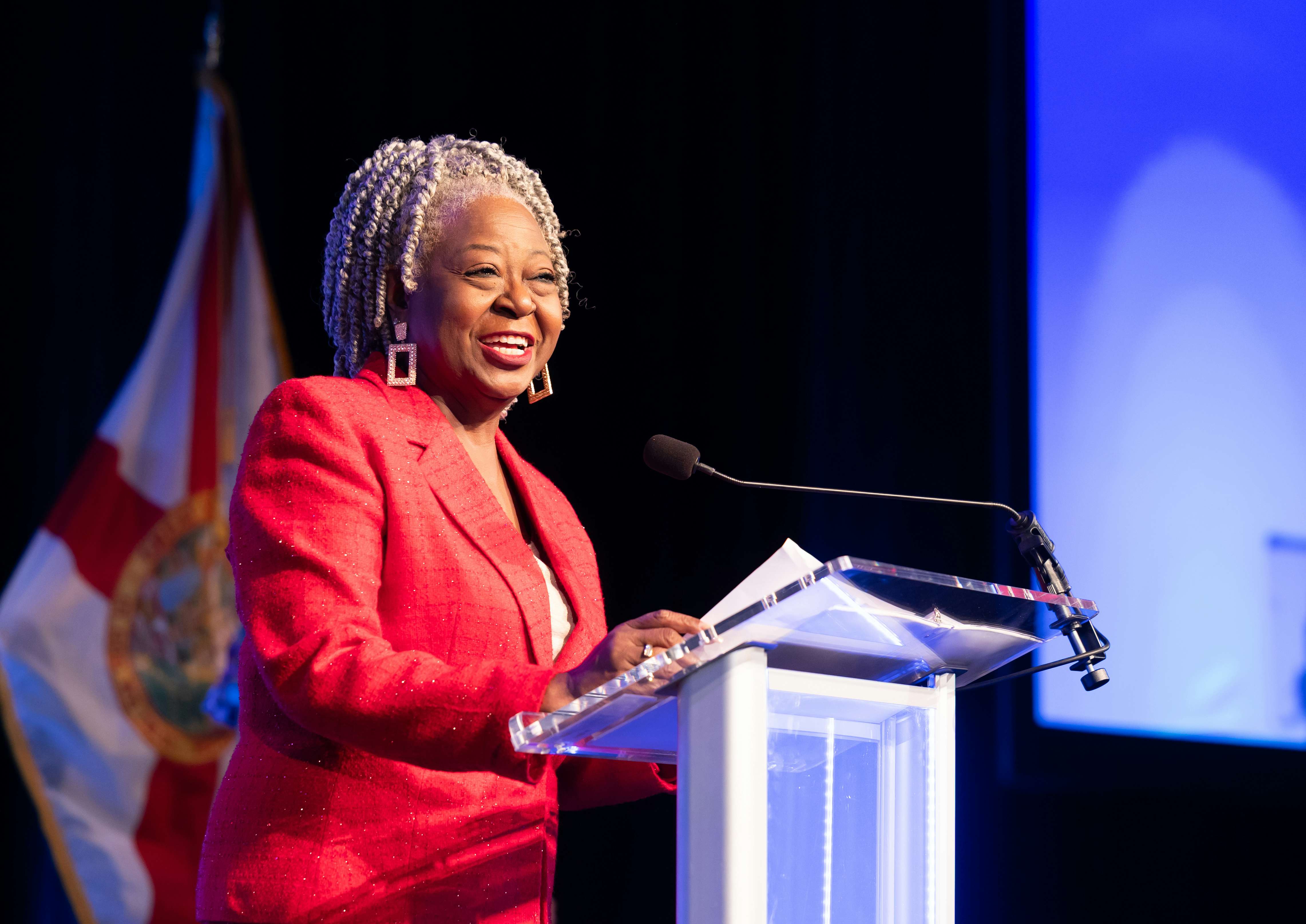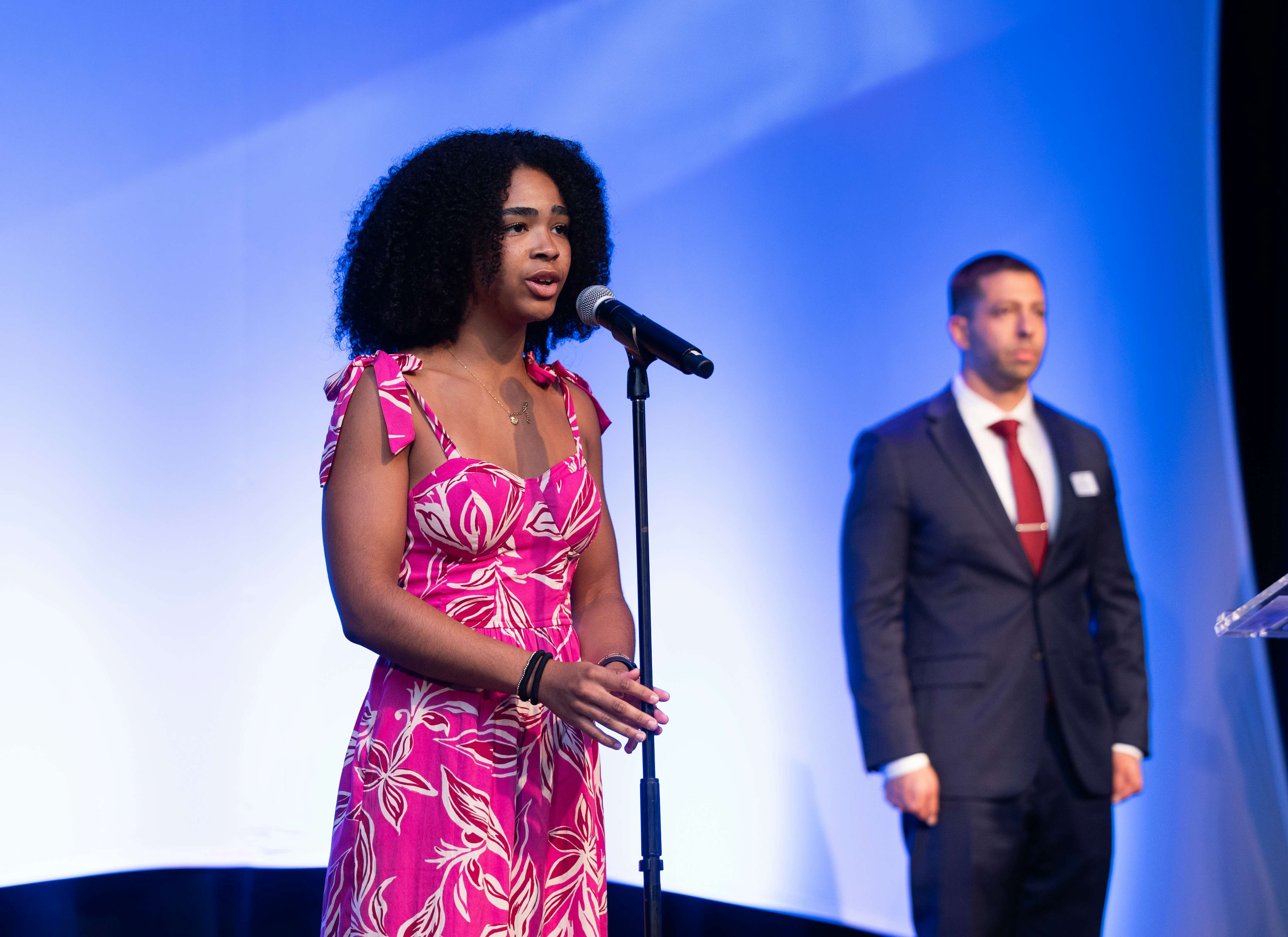 Next, the incredibly talented Aime Pierre, a vocal student from Alexander Dreyfoos School of the Arts, moved the audience with a stunning rendition of the National Anthem. And the energy didn’t stop there—the Platinum Steppers from Achievement Centers for Children & Families brought the house down with a dynamic step performance.