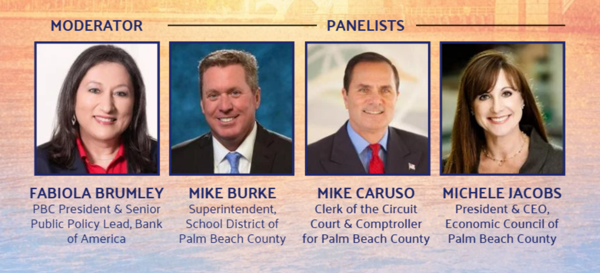 As Palm Beach County undergoes rapid transformation, becoming not only a national hub for business expansion but also an emerging Ǫuantum Hub, this event will bring together leaders from government, education, and business, including Palm Beach County School District Superintendent Mike Burke, Palm Beach County Clerk and Comptroller Mike Caruso, and Michele Jacobs, President and CEO of the Palm Beach County Economic Council. The panel will be moderated by Fabiola Brumley, President of Bank of America, Palm Beach County.